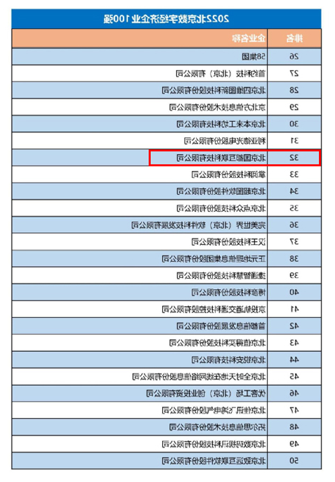 2022北京数字经济企业100强