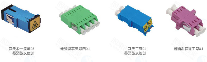 Fiber optic adapter types include SC, LC single and double ports, FC, ST and other connectors