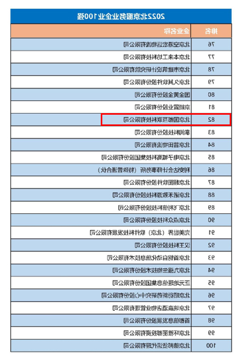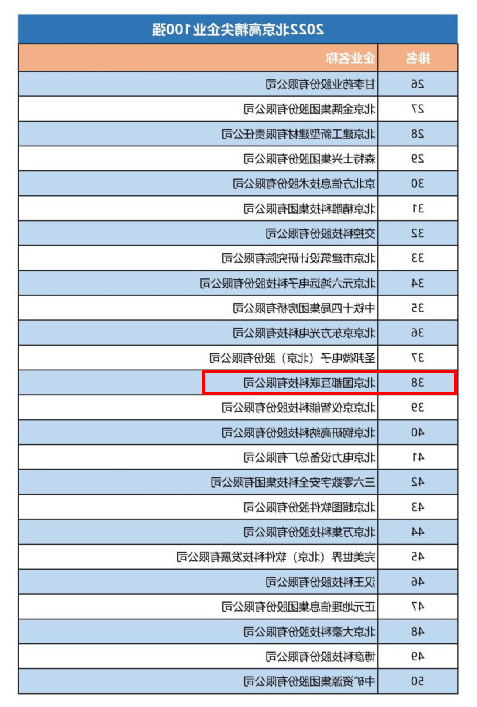 2022北京高精尖企业100强