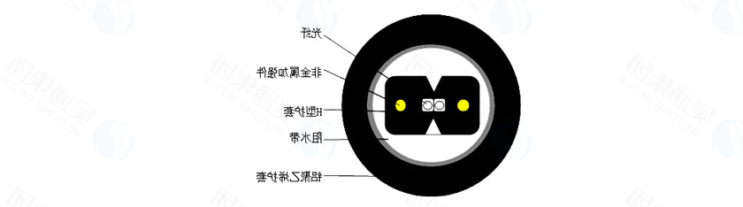 以紧套光纤线为常规光第一单元,周圍不对称区域非黑色金属增进零件,后面挤制护线套成缆。。