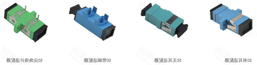 Fiber optic adapter types include SC, LC single and double ports, FC, ST and other connectors
